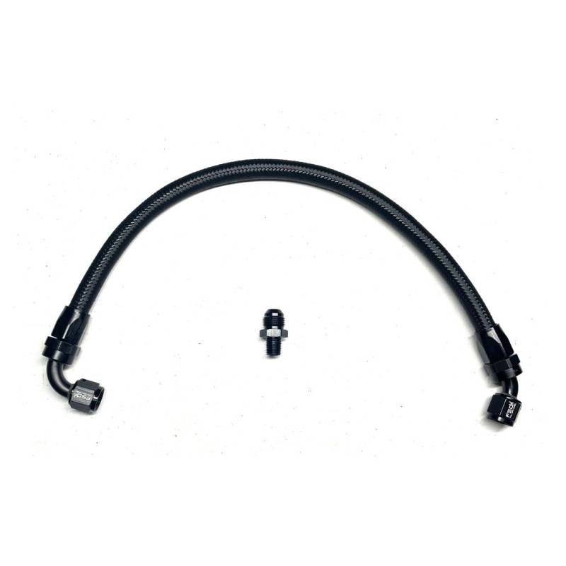 From the front port on the transmission to the heat exchanger mounted on the side of the block. Our lines are made from an extremely durable braided hose and billet aluminum fittings. As always this hose is backed by FSD's lifetime workmanship warranty, meaning if this line fails for any reason that is a fault of ours.
