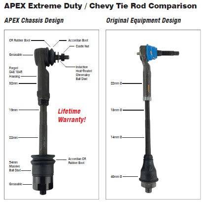 Chevy/GMC Super HD Tie Rod Assembly Front Left/Right Apex Design (2) TR104 For 02-06 Avalanche 2500 01-06 Silverado/Sierra1500 HD/2500/3500 01-13 Yukon XL 2500 Apex Chassis. At APEX we like to say our quality is not consistent, it's constantly evolving.
