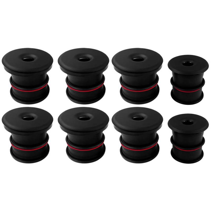 Silicone Body Mount Kit For 1999-2003 Ford F-250 / F-350 / F-450 / F-550 Crew Cab. Made From A Premium Silicone Rubber. These bushings offer great vibration isolation and will not crack or breakdown like the OEM foam or rubber bushings. Also comes with corrosion resistant coated steel cups and bolts.