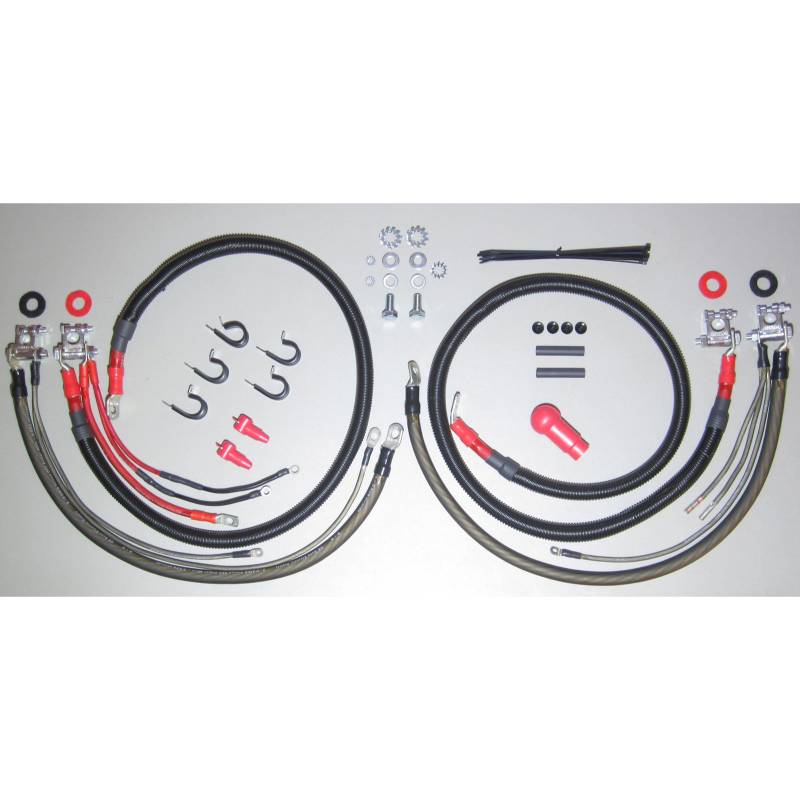 Military Style Battery Terminals - these are constructed to be more durable and stronger than the standard lead terminals, ensuring they will not easily crack or break! The Driver's Side Positive Battery Cable Assy - this includes a loomed cable, which is available in 1/0 AWG that runs to the starter, a 4 AWG cable that runs to the PDC, and dual 8 AWG feeds to the grid heater solenoids that include integrated fusible links. The Driver's Side Negative Battery Cable Assy - this includes a 1/0 AWG ground cable to the block, along with dual 8 AWG ground cables. The Passenger Side Positive Cable Assy - this includes a loomed 1/0 AWG Crossover Cable that is used to connect the battery positives. The Passenger Side Negative Battery Cable Assy - this includes a 1/0 AWG ground cable to the block, an 8 AWG ground cable, and a dual 8 AWG ground cable assembly. Boots are also included in order to insulate positive connections. Furthermore, a complete complement of hardware is also provided to ensure a smooth installation process.