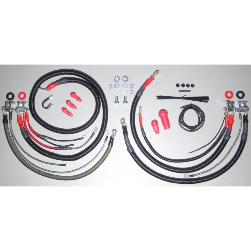 Military Style Battery Terminals - these are constructed to be more durable and stronger than the standard lead terminals, ensuring they will not easily crack or break! The Driver's Side Positive Battery Cable Assy - this includes a loomed cable, which is available in 1/0 AWG that runs to the starter, a 4 AWG cable that runs to the PDC, and dual 8 AWG feeds to the grid heater solenoids that include integrated fusible links. The Driver's Side Negative Battery Cable Assy - this includes a 1/0 AWG ground cable to the block, along with dual 8 AWG ground cables. The Passenger Side Positive Cable Assy - this includes a loomed 1/0 AWG Crossover Cable that is used to connect the battery positives. The Passenger Side Negative Battery Cable Assy - this includes a 1/0 AWG ground cable to the block, an 8 AWG ground cable, and a dual 8 AWG ground cable assembly. Boots are also included in order to insulate positive connections. Furthermore, a complete complement of hardware is also provided to ensure a smooth installation process.