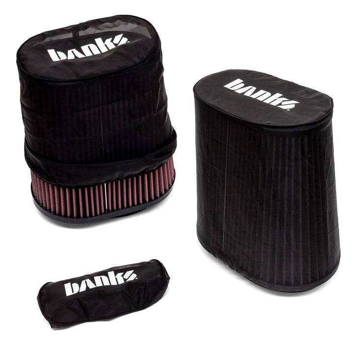 Highly recommended in dirty environments. Keep your Ram-Air Filter protected from large debris, bugs, mud, etc... Built from a breathable material, the Banks Pre-Filter simply goes over your air filter and provides additional protection and can even extend cleaning intervals. Works with both Dry and Oiled filters.
