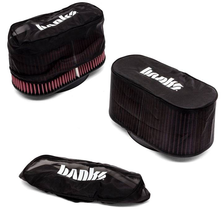 Highly recommended in dirty environments. Keep your Ram-Air Filter protected from large debris, bugs, mud, etc... Built from a breathable material, the Banks Pre-Filter simply goes over your air filter and provides additional protection and can even extend cleaning intervals. Works with both Dry and Oiled filters.