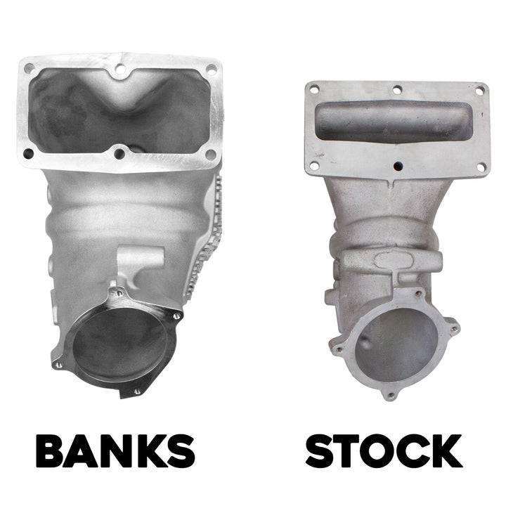 Banks Dual Heat Capable Monster-Ram improves throttle response and fuel economy by eliminating airflow restrictions. The patent-pending system prevents severe engine damage by replacing the failure prone killer grid heater with the Banks high-flow cast intake plate. The factory heater can't fail if it's not there. Monster-Ram is the only 50-state emissions-compliant RAM intake elbow.
