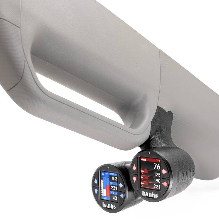 Vehicle-specific grab handle mount designed to work with the low profile nature of the iDash. Ergonomically designed with an optimized viewing angle that is closer to the driver for enhanced visibility. Stealth Pods hide wiring for a clean install and can be painted to match OEM interior colors.