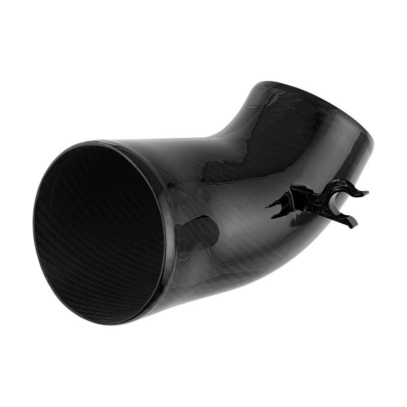 Pairs the inlet with a fully round, 100% dry carbon‑fiber airbox duct to reduce weight and frictional losses while maintaining unrestricted airflow.