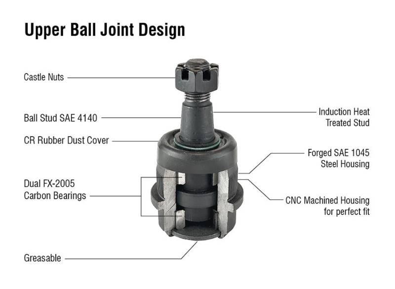 - UPPER: Carbon Bearing Design: Used mainly in Jeep and Dodge upper ball joints is the solver of all things wobbly. Like all our products.