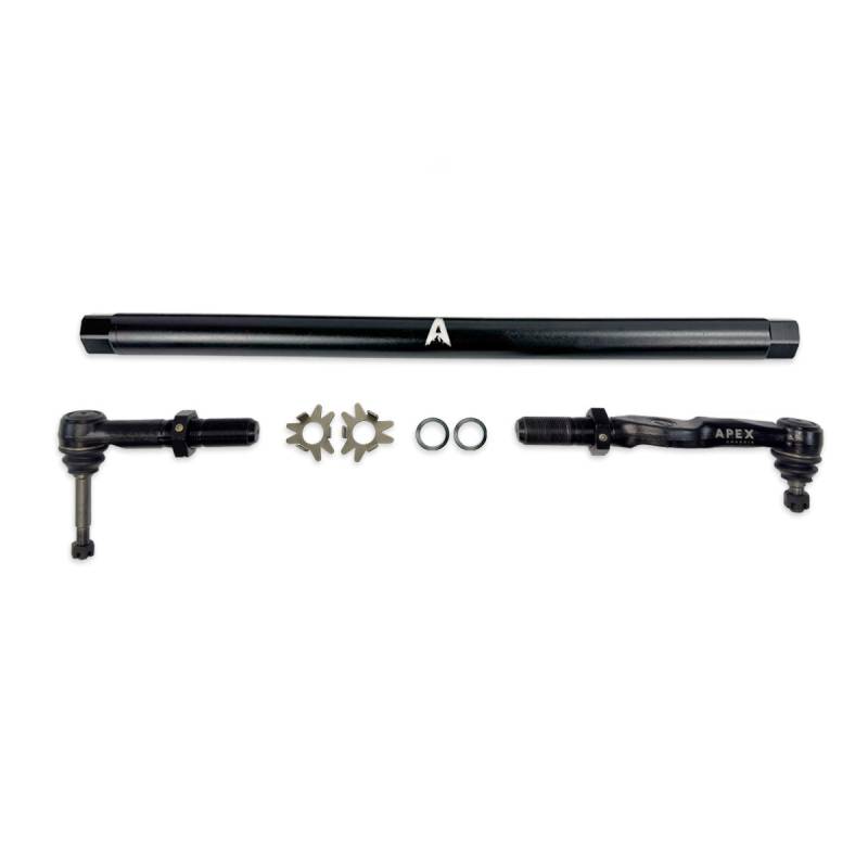 - Reversible Drag Link: Another APEX Innovation: In some lifted or aftermarket applications the pitman arm end of the drag link is flipped over causing difficulties with mounting the steering stabilizer into the tapered hole on the drag link end. To solve this we have drilled the hole out straight and provided a reversible stainless steel taper sleeve so the steering stabilizer can be mounted from either side.