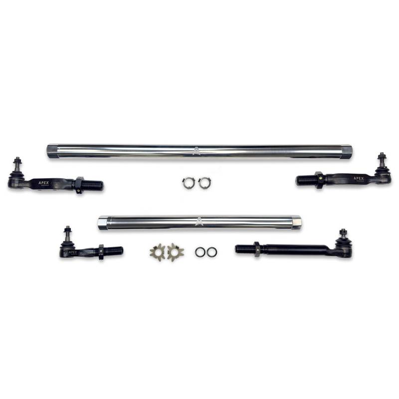 - ProLock Link Connect System (TM): Exclusively from APEX - This patent pending system utilizes a precision keyway cut into the threads of our tie rod and drag link ends, and a pre-bent keyway washer that locks onto the wrench flats of the connecting rod to completely stop any tie rod rotation once the jam nut is set. The jam nut, once torqued to spec, is then locked in place with 3 set-screws inset into the jam nut.