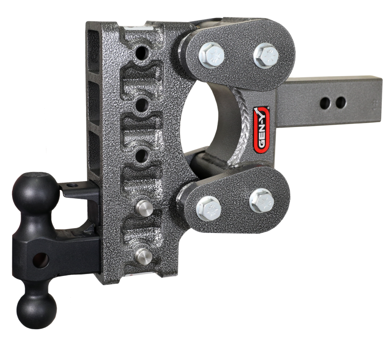 GEN-Y's Boss Adjustable Drop Hitches start at 10,000 LB towing capacity and go up to 32,000 LB towing capacity. The Torsion-Flex Drop Hitch is the best hitch for ultimate control and safety while towing any bumper style trailer on the market including pintle style couplings.