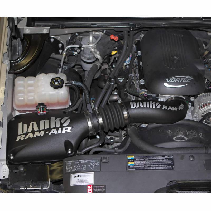 Banks Ram-Air Intake feeds your Chevy/GMC gas engine cooler, denser, outside air for greater power and fuel economy. Its performance is extensively tested and validated in the computer using Computational Fluid Dynamics software, on the flowbench, and later on the vehicle. Let the others build and ship: Ram-Air's performance is proven, Again and Again! Note: This product does not fit 2500 or 3500 pickup trucks. Banks Ram-Air for Chevy/GMC V8's.