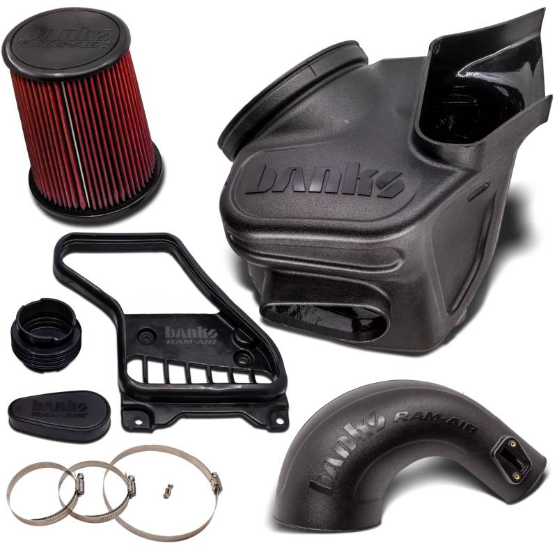The Banks Ram-Air Intake adds an impressive dyno-tested 18.3 hp and 17.7 lb-ft. Using NASA-developed fluid dynamics, the system increases air density to the turbo inlet, improving throttle response and fuel economy. The enclosed housing keeps out power-robbing hot air. The massive filter element outflows stock and all competitors, captures finer debris, and extends service intervals.